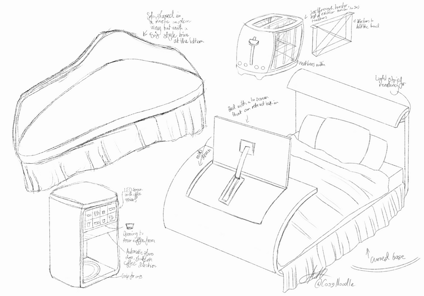 Selecting an image will enlarge the view, if viewing on pc selecting arrows where available on the side will take you through further sketches of a concept. If viewing on a phone, just slide across using your finger as this works better.